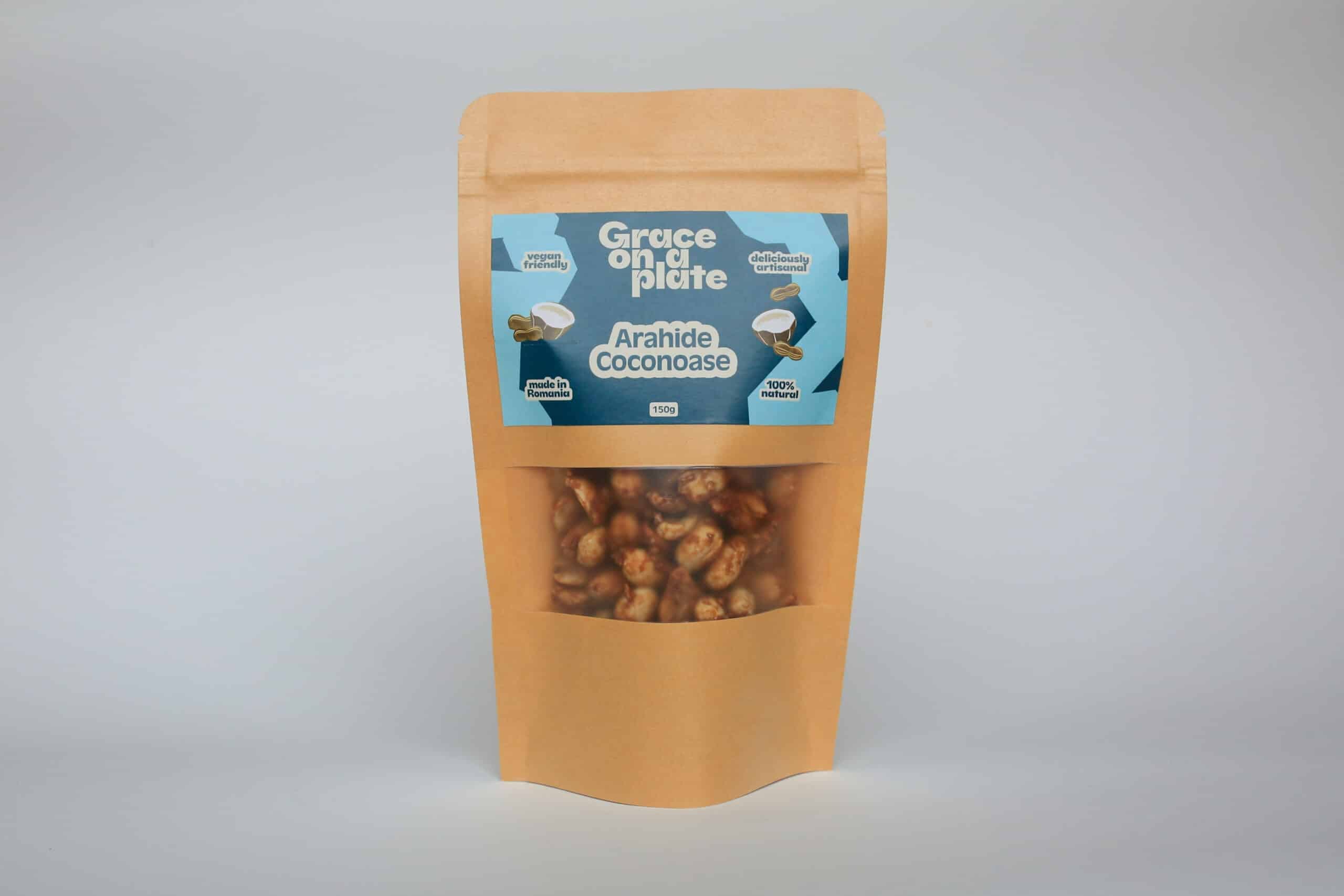 Arahidele Coconoase sunt o gustare pe bază de arahide coapte, unde textura crocantă a arahidelor se îmbină cu aroma distinctă a nucii de cocos. Spre deosebire de arahidele pralinate obișnuite, snack-ul Arahide Coconoase evită excesul de zahăr, utilizând zahărul de cocos (15%) pentru notele sale naturale de caramel, nu doar pentru îndulcire. O gustare bogată în proteine și fibre.